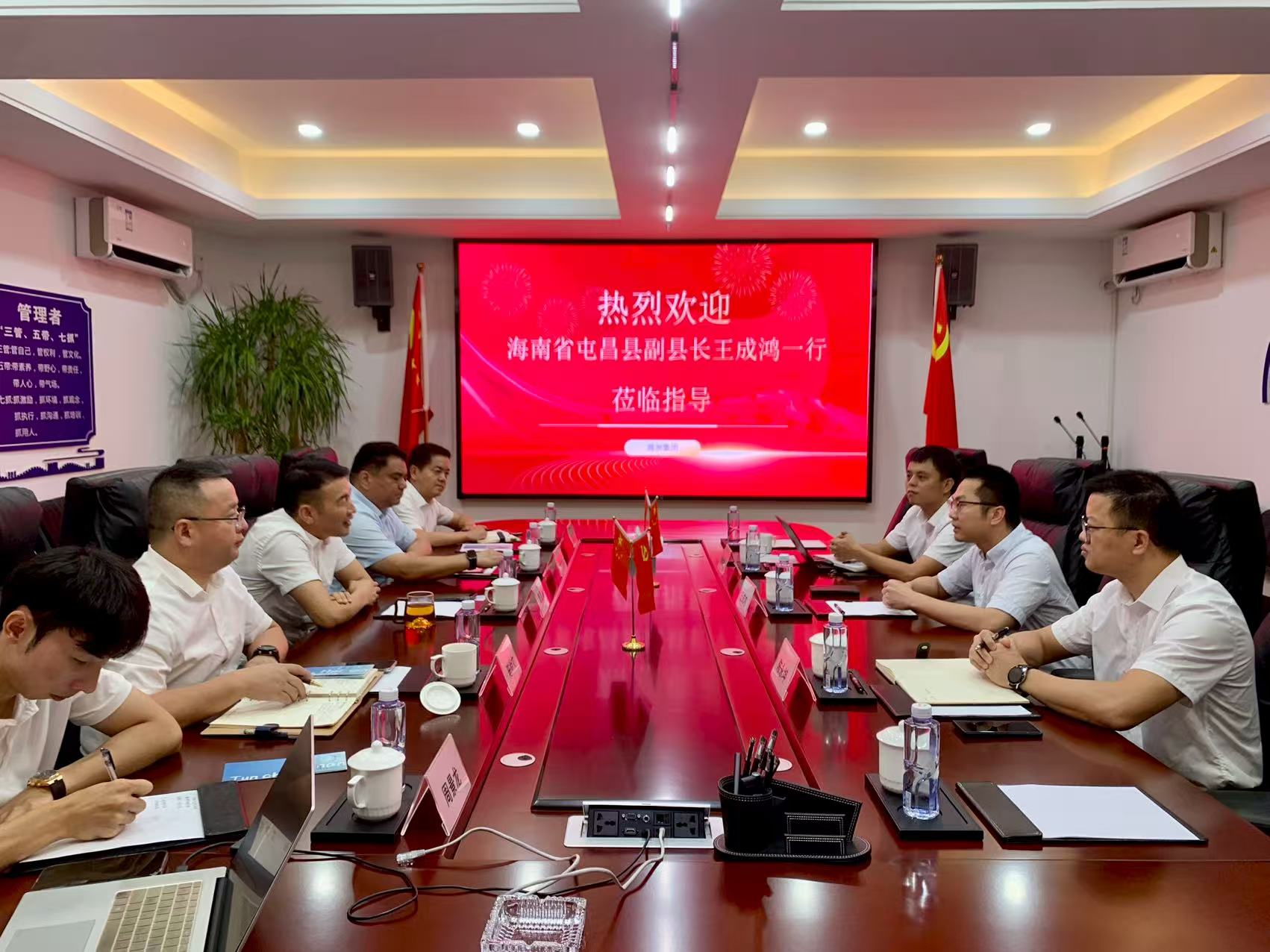 集团两办主任唐广彬、海南合资公司副总经理周景龙共同参与接待。